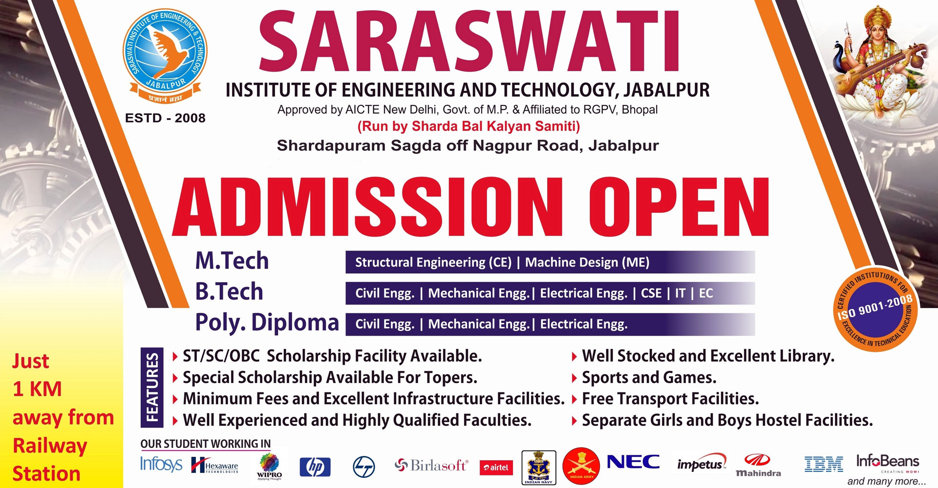Swaraswati Institute of Engineering and Technology, The Society was formed on 5th September 1974 and registered with the Society of Registrar, State of M.P. with a Registration Number 3616 with a view of promote the education in all disciplines of the society and life and safeguard the social values of our country and to support the overall development of our country.