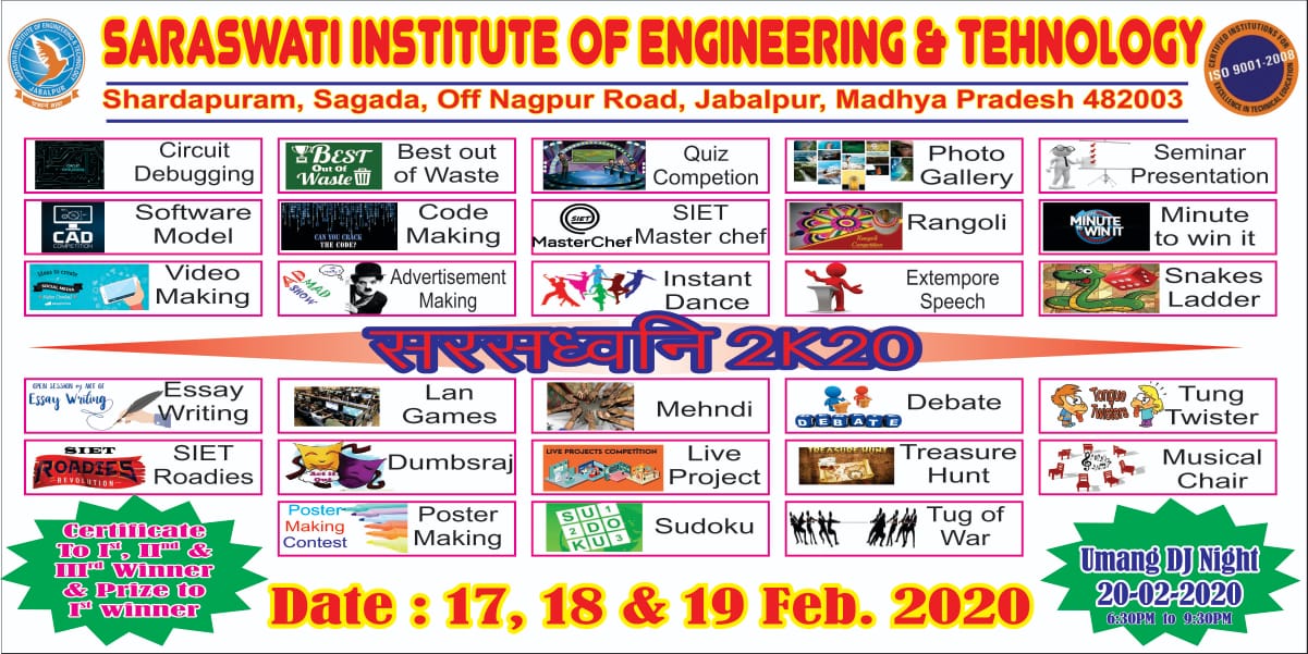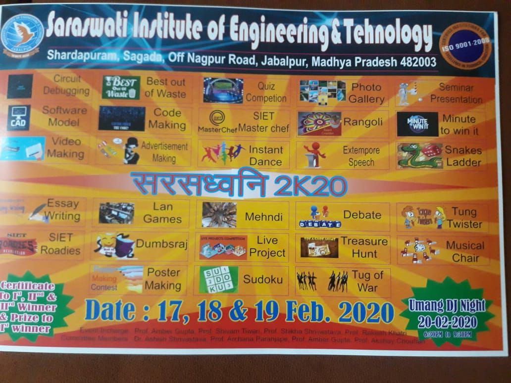 Swaraswati Institute of Engineering and Technology, The Society was formed on 5th September 1974 and registered with the Society of Registrar, State of M.P. with a Registration Number 3616 with a view of promote the education in all disciplines of the society and life and safeguard the social values of our country and to support the overall development of our country.
