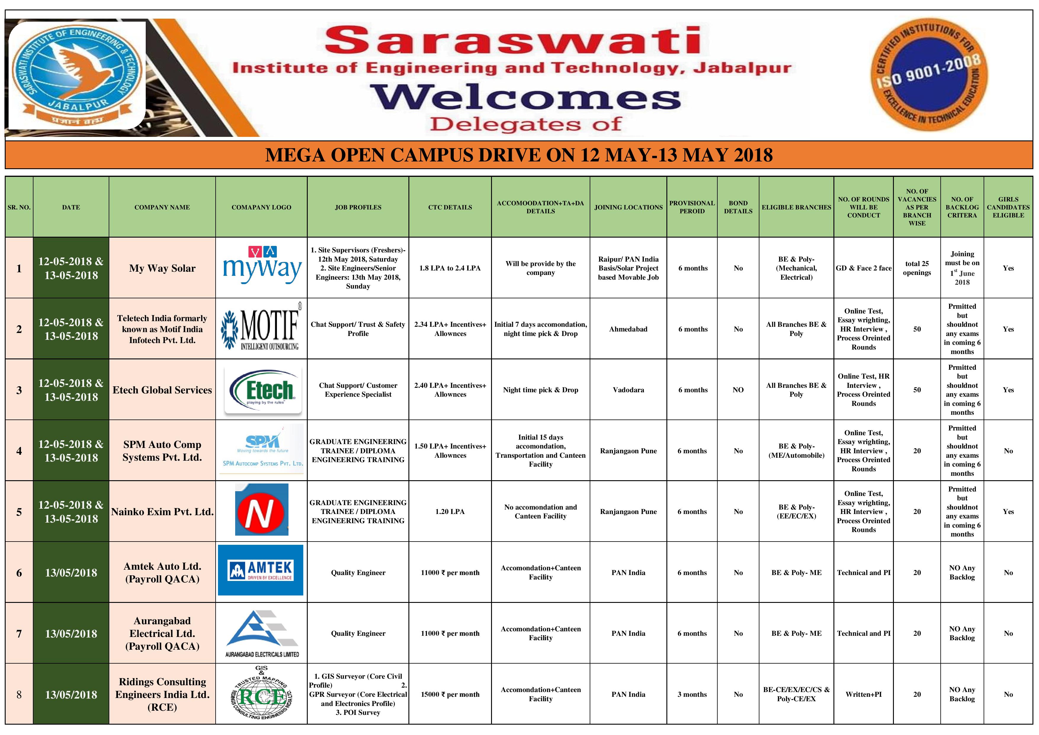 Swaraswati Institute of Engineering and Technology, The Society was formed on 5th September 1974 and registered with the Society of Registrar, State of M.P. with a Registration Number 3616 with a view of promote the education in all disciplines of the society and life and safeguard the social values of our country and to support the overall development of our country.